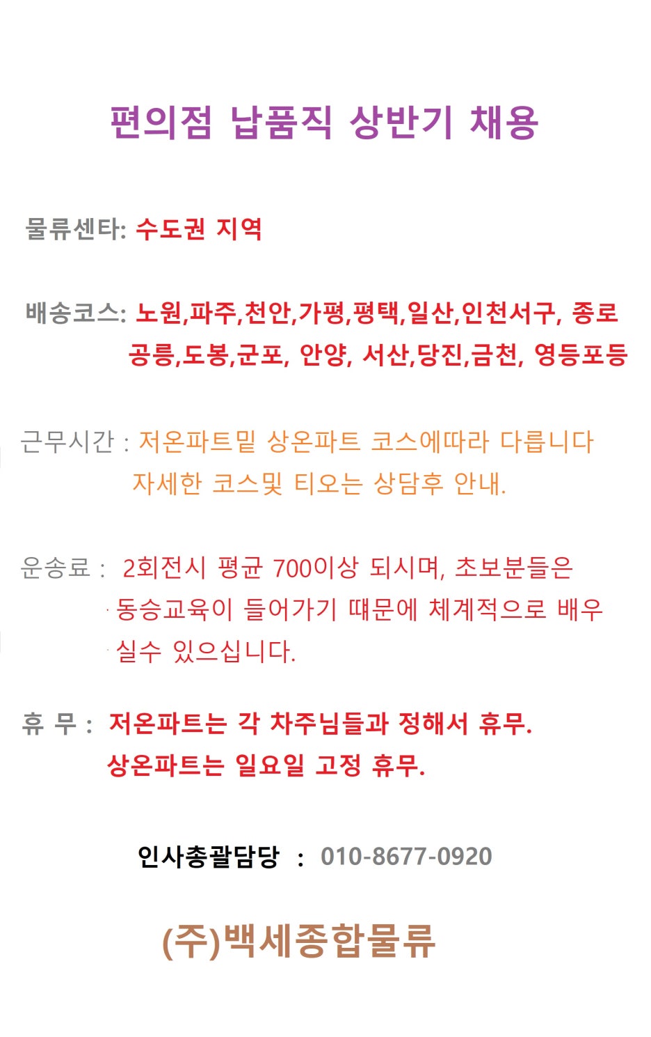 경기권 편의점 배송 채용