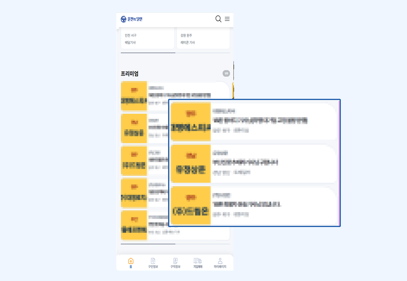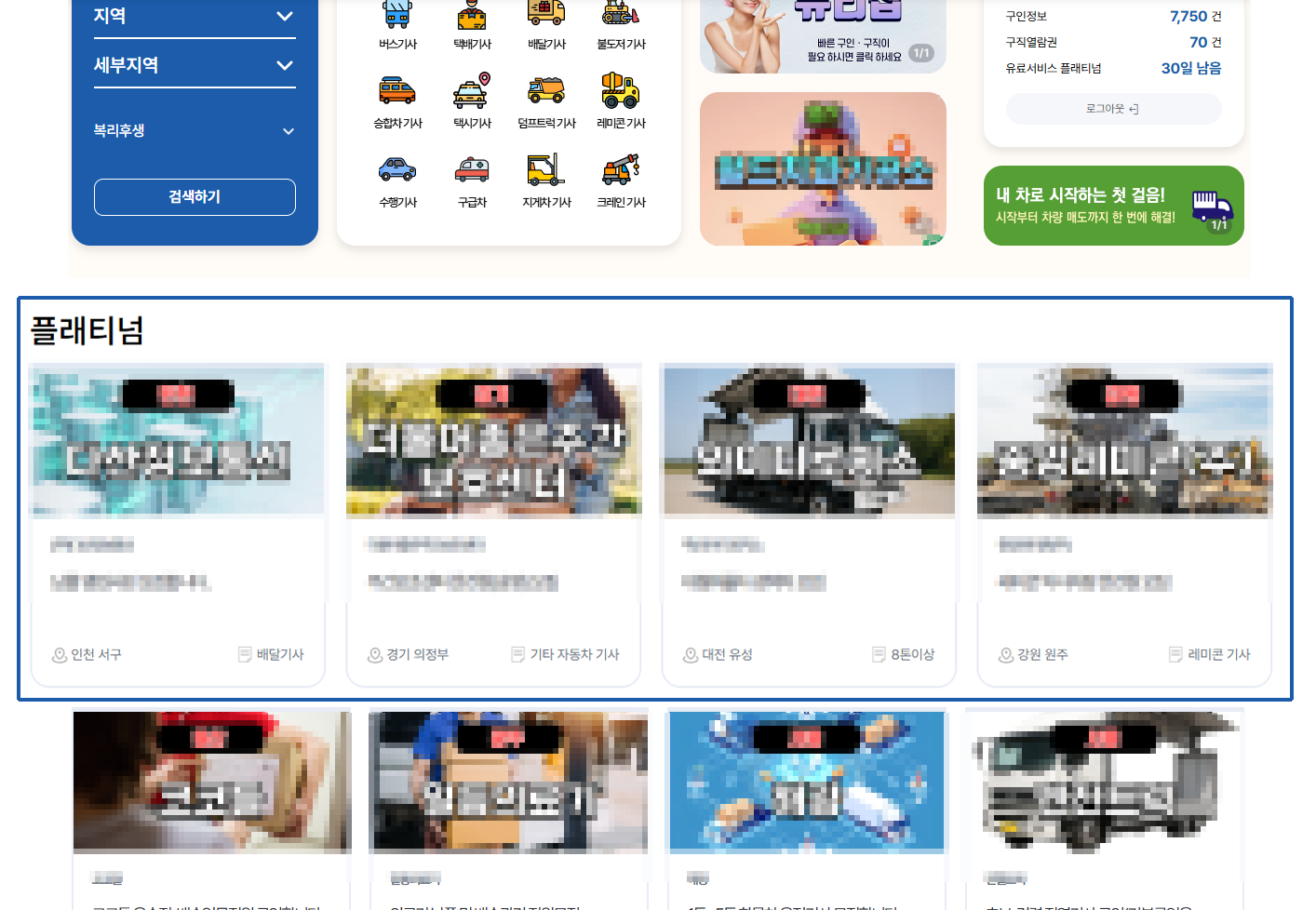 메인화면, 구인정보, 지역검색 최상단 노출, 구직정보 열람